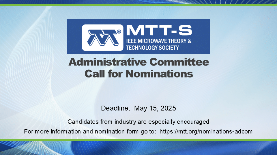Submit the nomination to the N&A Committee (mtt-nom-appointments@ieee.org) before May 15, 2025.