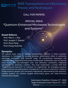 The special issue Quantum-Enhanced Microwave Technologies and Systems aims to highlight breakthrough research where quantum mechanics is leveraged to break classical performance limits in sensitivity, resolution, bandwidth, and dynamic range. As traditional microwave and millimeter-wave engineering face critical bottlenecks—such as thermal noise floors, the Chu-Harrington limit, and diffraction boundaries—conventional approaches are reaching a plateau. This issue focuses on the critical transition from “engineering for quantum” to “quantum for engineering”. By exploiting quantum phenomena like superposition, entanglement, and atomic coherence as functional resources, this issue seeks to bridge the gap between quantum physics and microwave engineering, showcasing how quantum-enabled devices can deliver tangible advantages over state-of-the-art classical counterparts.